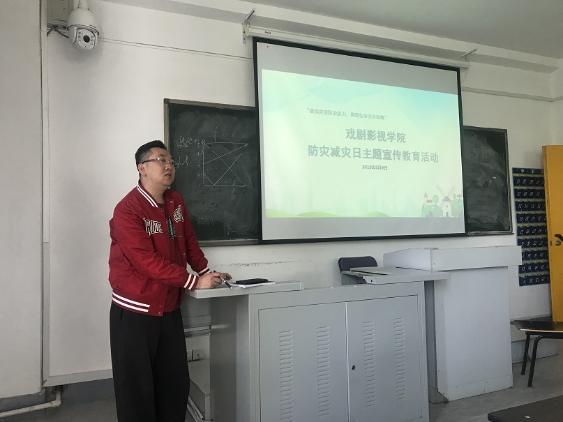 活动依托戏剧影视学院一楼宣传大屏幕,将相关防灾减灾知识和警示进行循环播放,加强学生对灾害的认识。并于5月9日中午12时,在501教室开展防灾减灾主题讲座,党总支副书记孙彤姝、全体辅导员及全体学生干部、相关学生代表参加讲座,并要求讲座内容向全体学生宣传传达,切实提升学生防灾抗灾能力,在讲座结束后进行全体学生签字活动。